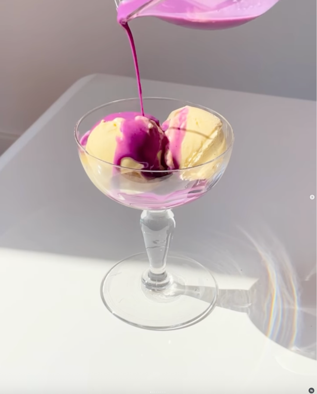 - Conseil n°2 : Une fois mélangé, versez dans un autre récipient qui contient le lait de votre choix pour un joli dégradé de couleur
